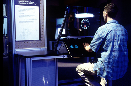 Can you drive through a book? Speeder Reader lets you accelerate through the story of a young girl's trip from Mars to the outer planets as fast as you can read, and measures your speed on the digital speedometer. Race your friends! Steer to different stories, shift to different chapters with this unusual one-word-at-a-time display. |