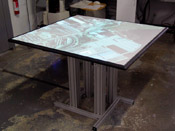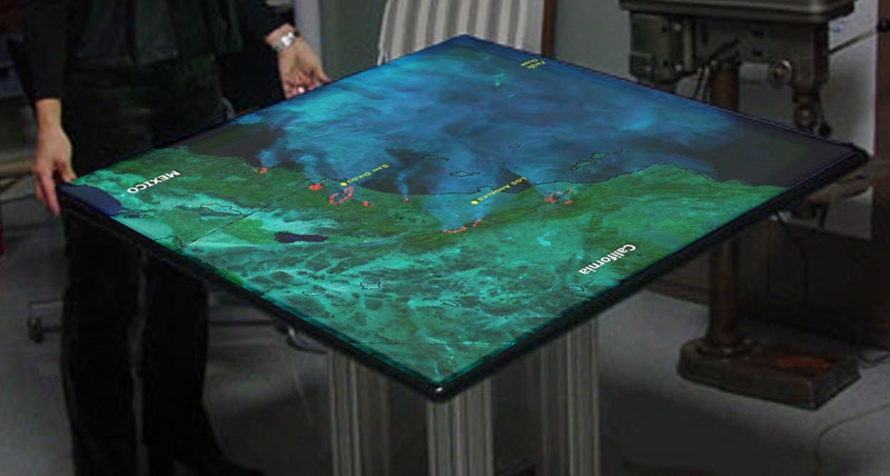 Tilty Tables can be an engaging dynamic display for shopping center or airport maps. They can also be used for photo browsing and analysis, and for viewing of detailed images such as multi-dimensional flow diagrams and tree charts. Onomy Labs is currently developing Tilty Tables that will sense rotation, twist, and touch and adding automatic position detection for orientation. These sensor capabilities and the addition of 3D will give new and unique capabilities for your dynamic interactive image displays.