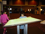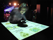 The latest innovation in Tilty Tables is the "Twisty Table" which instruments twist on the table. For the new TerraLink Gallery at the Maryland Science Center, Onomy Labs created the first Twisty Table to allow visitors to explore very large high resolution satellite images in detail. Like our classic Tilty Table, tilting the table top allows the visitor to scroll around an image. The new twist feature enables the visitor to zoom in to see much more detail, or to zoom out and get a sense of the whole.The very high resolution of the Twisty Table data presents enough details for visitors to find their house, school, or office. When the visitor zooms all the way out, the program displays a selection of different images, for the visitor to explore.
